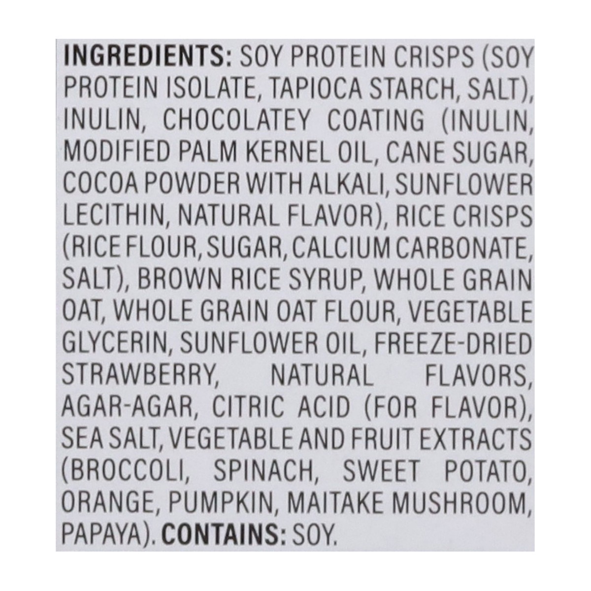 Soy Protein Crisps (Soy Protein Isolate, Tapioca Starch, Salt), Inulin, Chocolatey Coating (Inulin, Modified Palm Kernel Oil, Cane Sugar, Cocoa Powder with Alkali, Sunflower Lecithin, Natural Flavor),…
