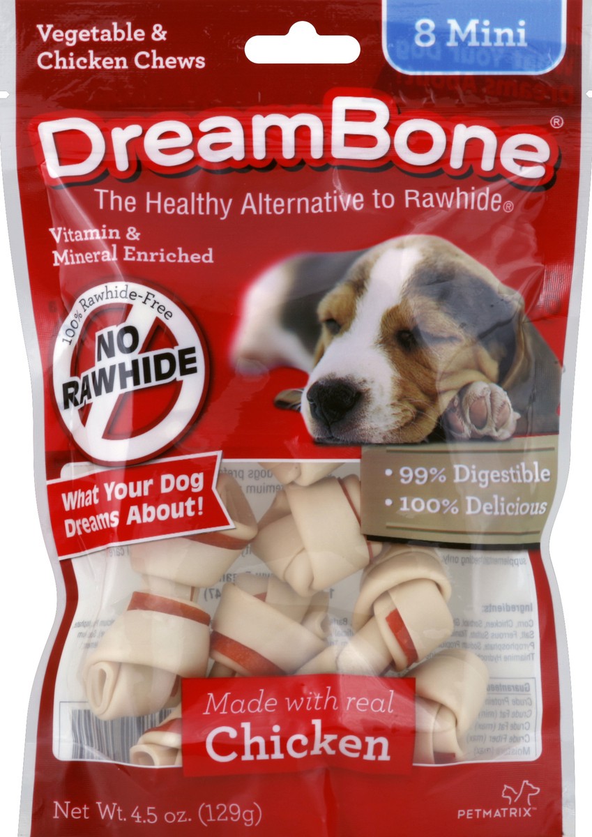 The healthy alternative to rawhide. Vitamin & mineral enriched. 100% rawhide-free. No rawhide. What your dog dreams about! 99% digestible, 100% delicious. Made with real chicken. Vegetable outside, re…