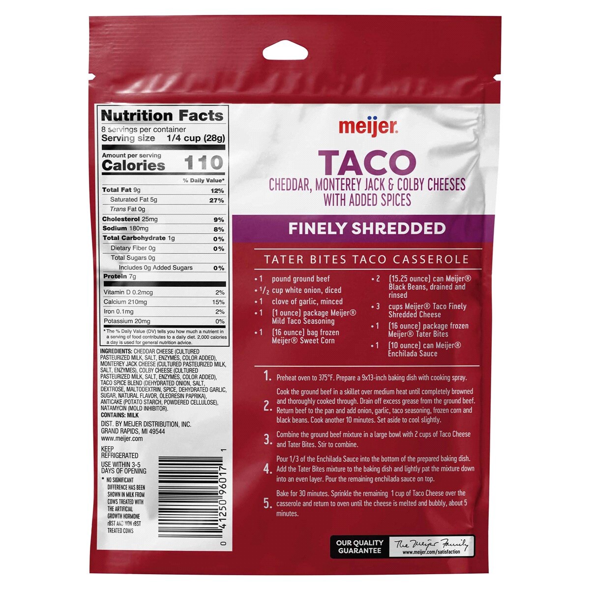 Whether you are a soft shell, hard shell, taco salad, or nachos kind of person, this is the cheese for you. The combination of finely shredded cheddar, monterey jack, & colby cheeses, mixed with a ble…