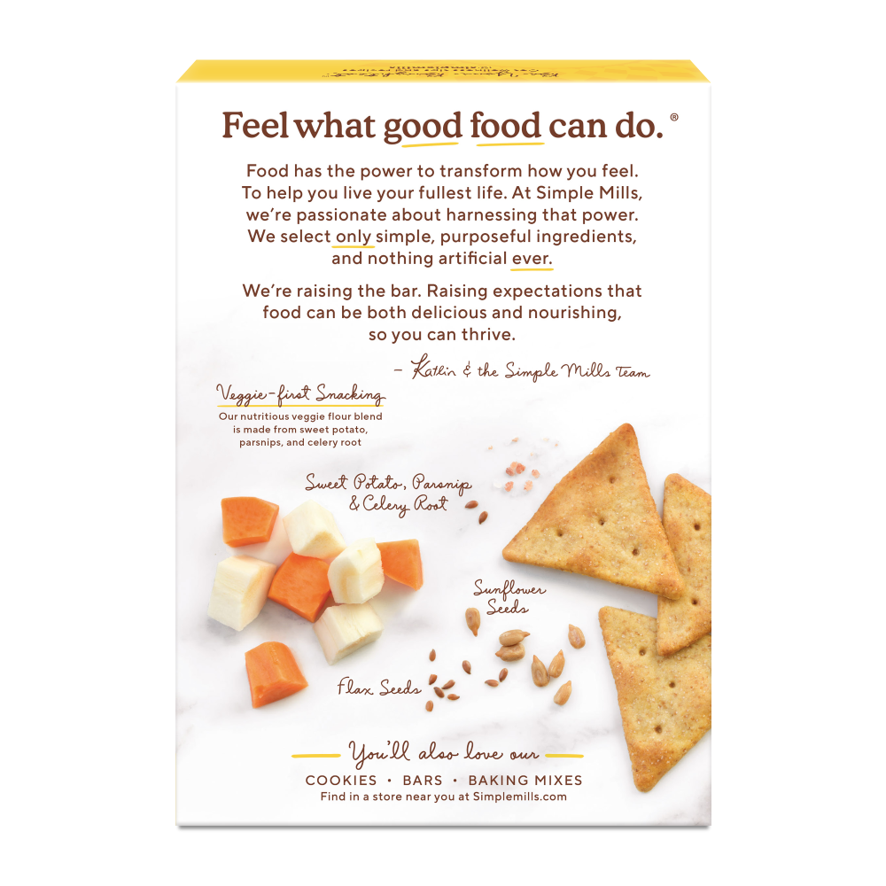 Vegetable Flour Blend (Sweet Potato, Parsnip, Celery Root), Seed Flour Blend (Sunflower Seeds, Flax Meal), Cassava Flour, Tapioca Starch, Organic Sunflower Oil, Himalayan Salt, Rosemary Extract (for F…