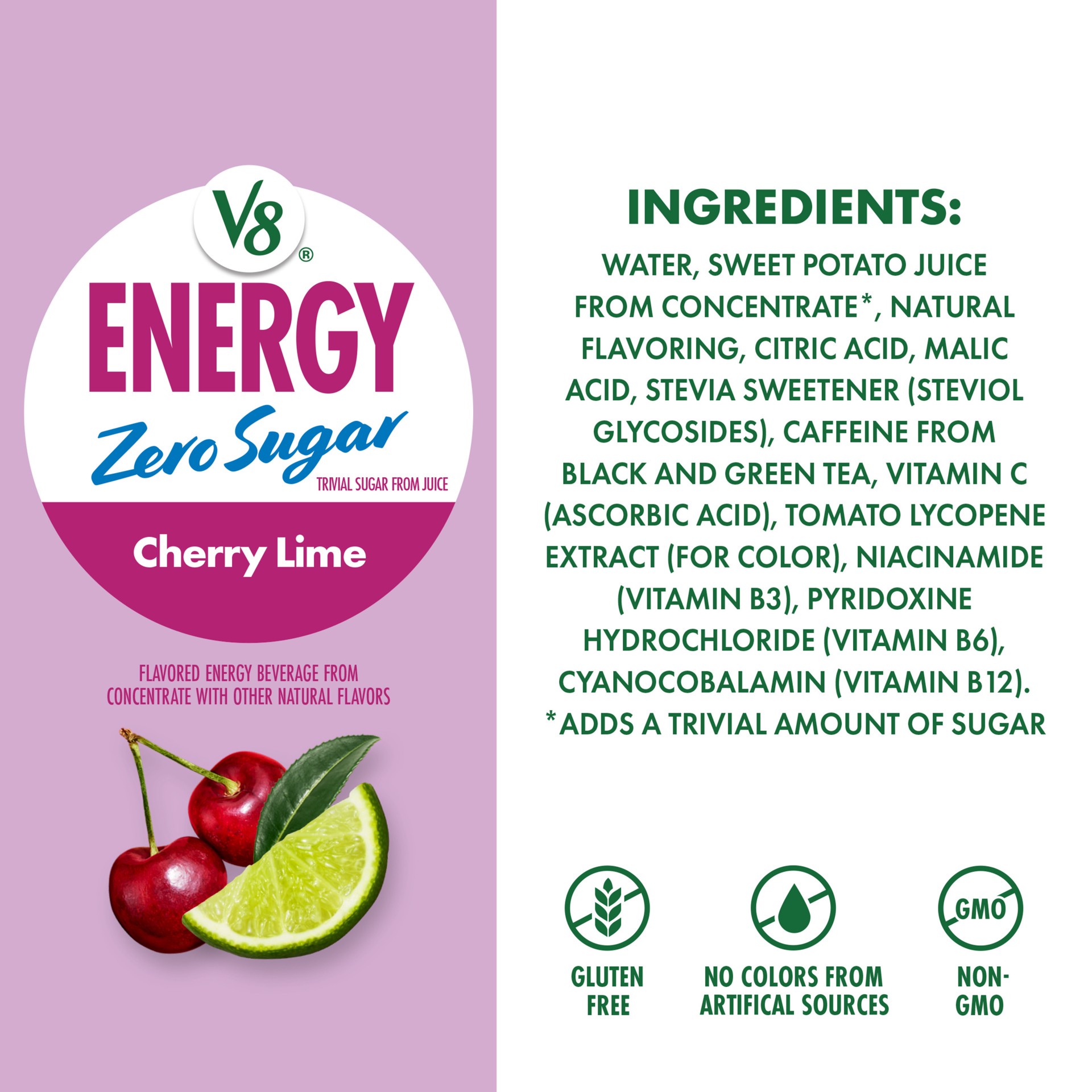Take a moment to enjoy the refreshing taste of V8 Energy Zero Sugar Cherry Lime Energy Drink. A zero sugar* energy drink designed for those who savor the moment and aim to balance work, play, and ever…