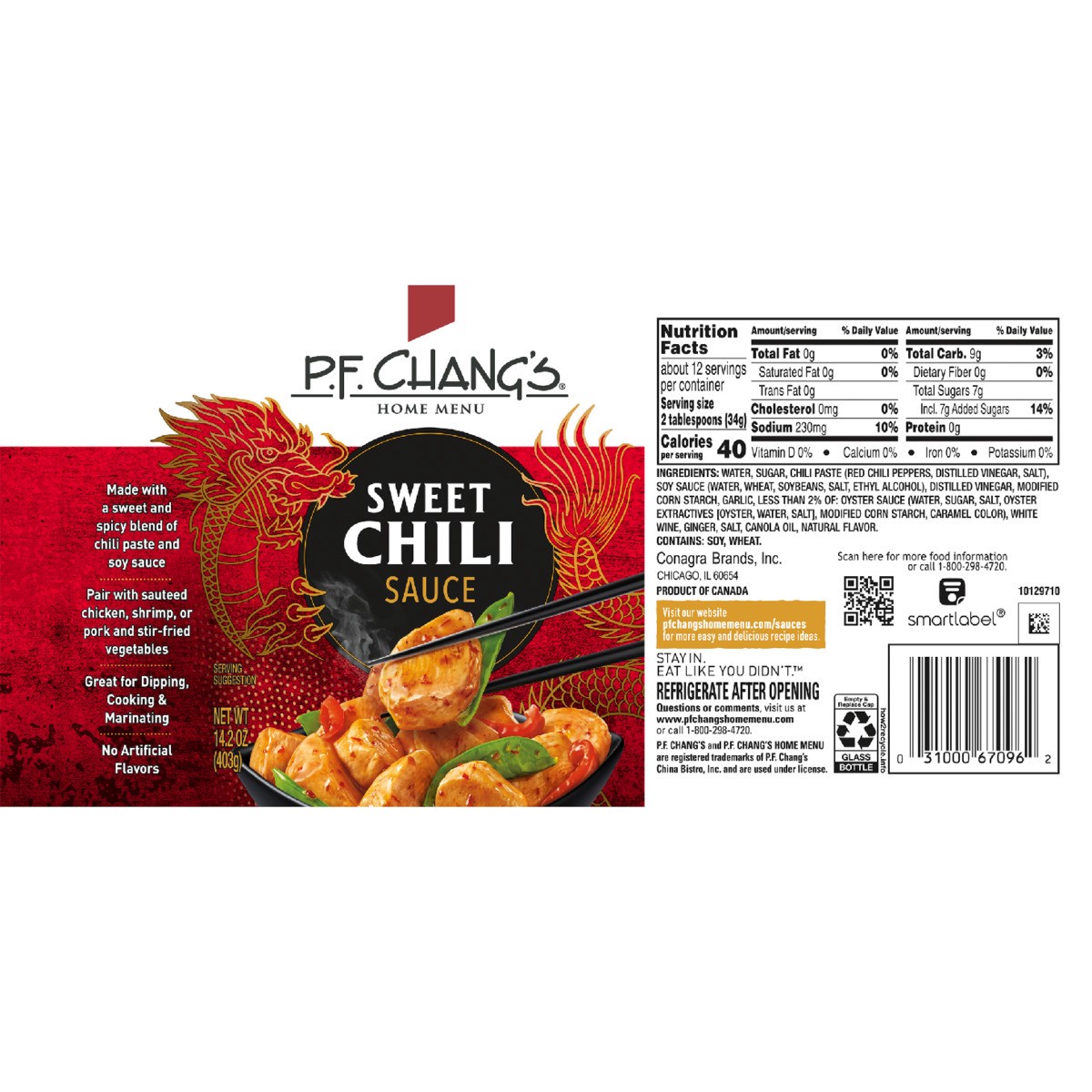- What You Get: One 14.2-oz. bottle of P.F. Chang’s Home Menu Sweet Chili Sauce