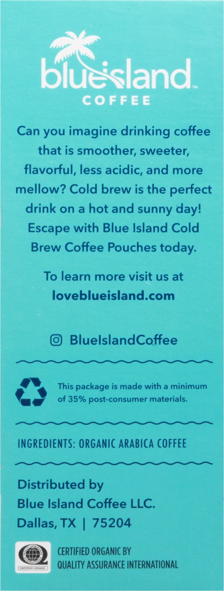 Blue Island Pouches Cold Brew Organic 100% Colombian Coffee 8.46 oz