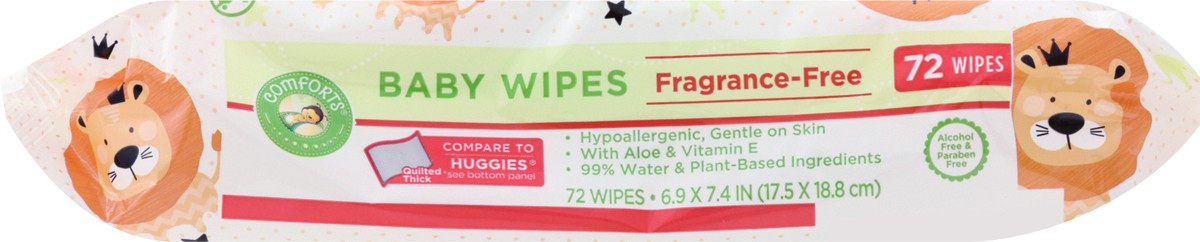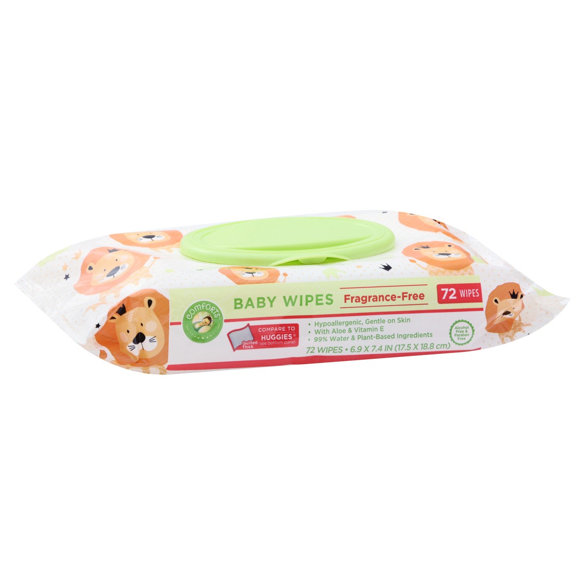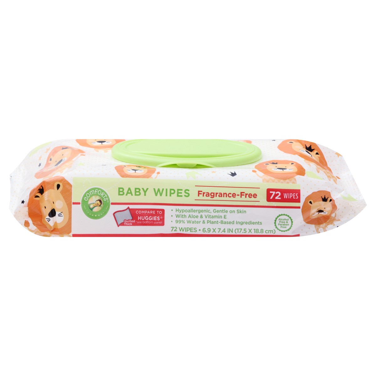6.9 x 7.4 in (17.5 x 18.8 cm) Compare to huggies quilted thick. See bottom panel. Hypoallergenic, gentle on skin. With aloe & vitamin E. 99% Water & plant-based ingredients. Alcohol free & paraben fre…