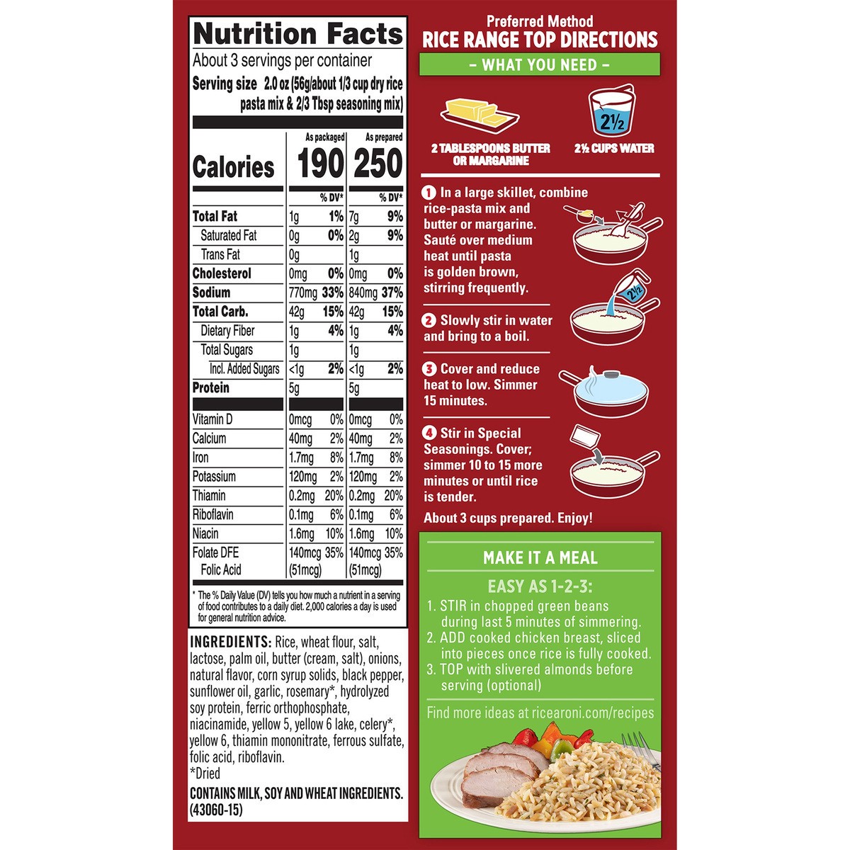 RICE, WHEAT FLOUR, SALT, LACTOSE, PALM OIL, BUTTER (CREAM, SALT), ONIONS*, NATURAL FLAVOR, CORN SYRUP SOLIDS, BLACK PEPPER, SUNFLOWER OIL, GARLIC*, ROSEMARY, HYDROLYZED SOY PROTEIN, FERRIC ORTHOPHOSPH…