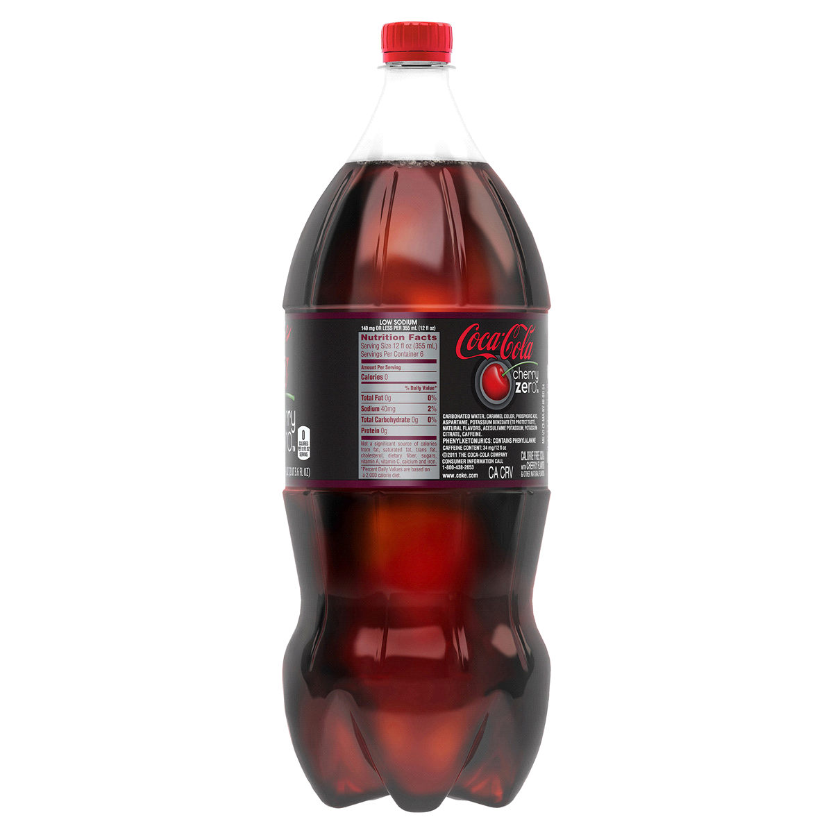 - Delicious combination of Coca-Cola Zero Sugar and cherry flavorZero sugar in every sip34 mg of caffeine in each 12 oz serving67.6 FL OZ in each bottleThis sparkling beverage is best enjoyed ice-cold for maximum refreshment