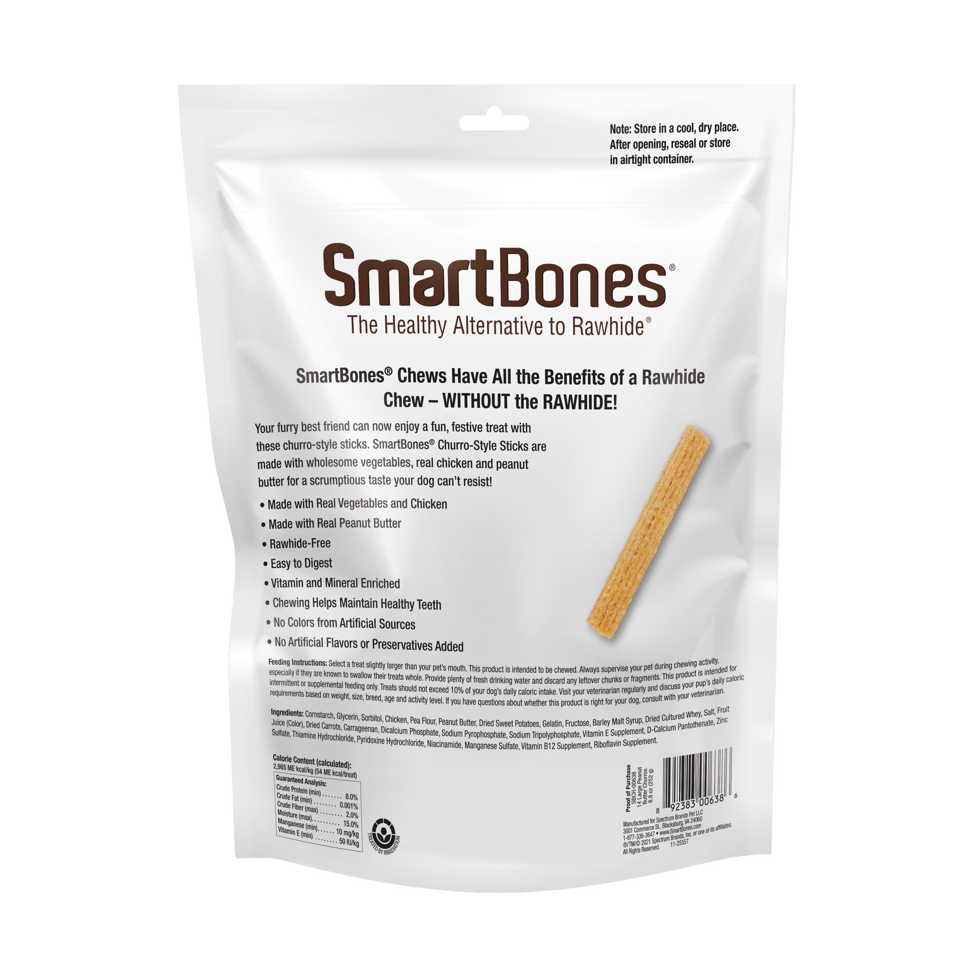 SmartBones chews have all the benefits of a rawhide chew…without the rawhide! No-rawhide SmartBones chews are made with wholesome vegetables, real chicken and peanut butter for a scrumptious taste dog…