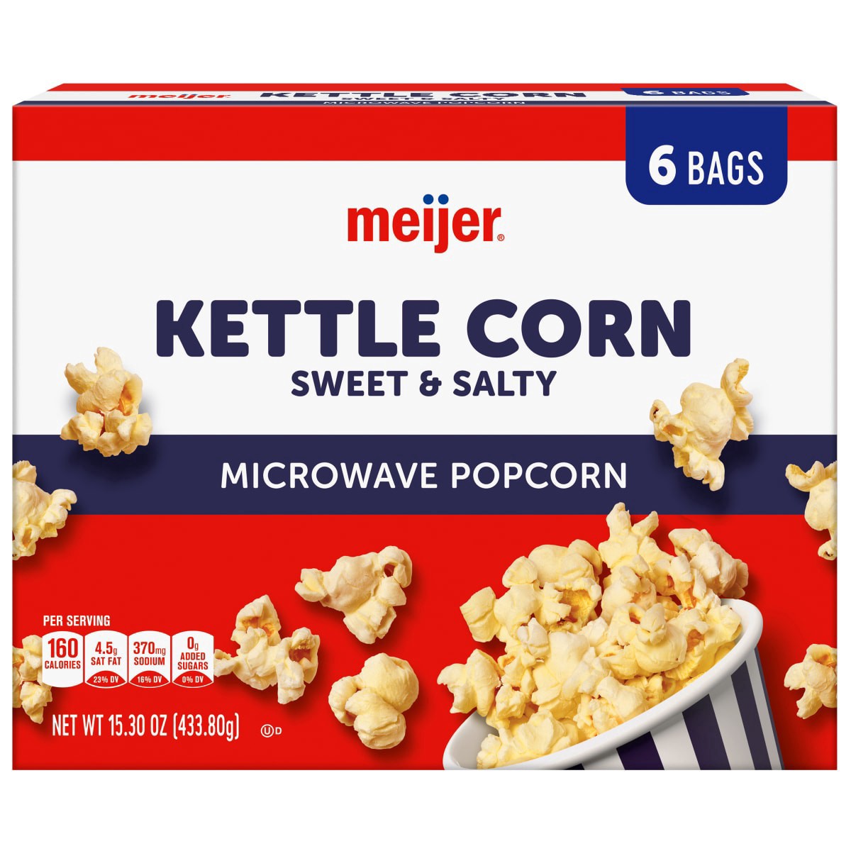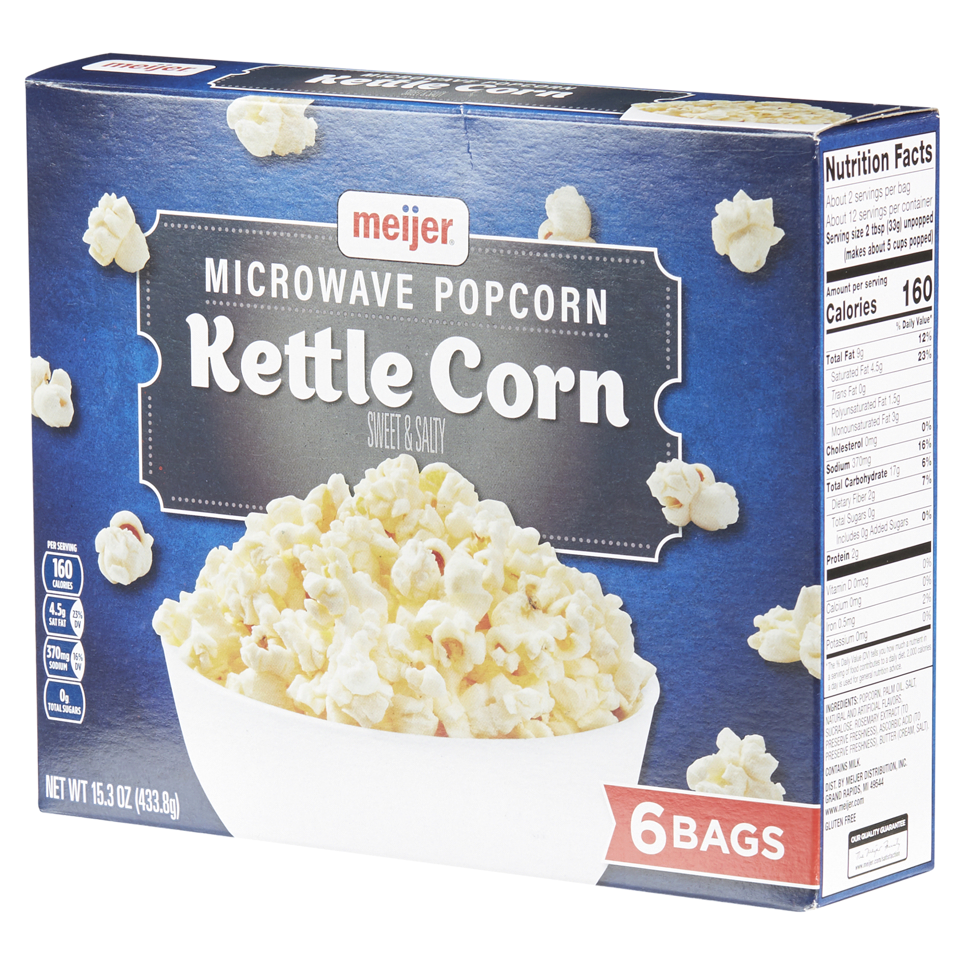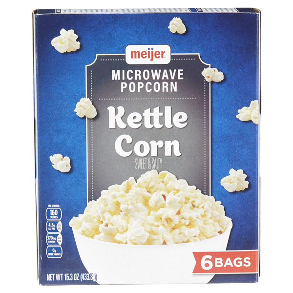 Have all of your sweet and salty cravings satisfied with one bite of Meijer Kettle Microwave Popcorn. With six bags per box, you’ll always have a deliciously fresh-popped snack to grab as an after-wor…