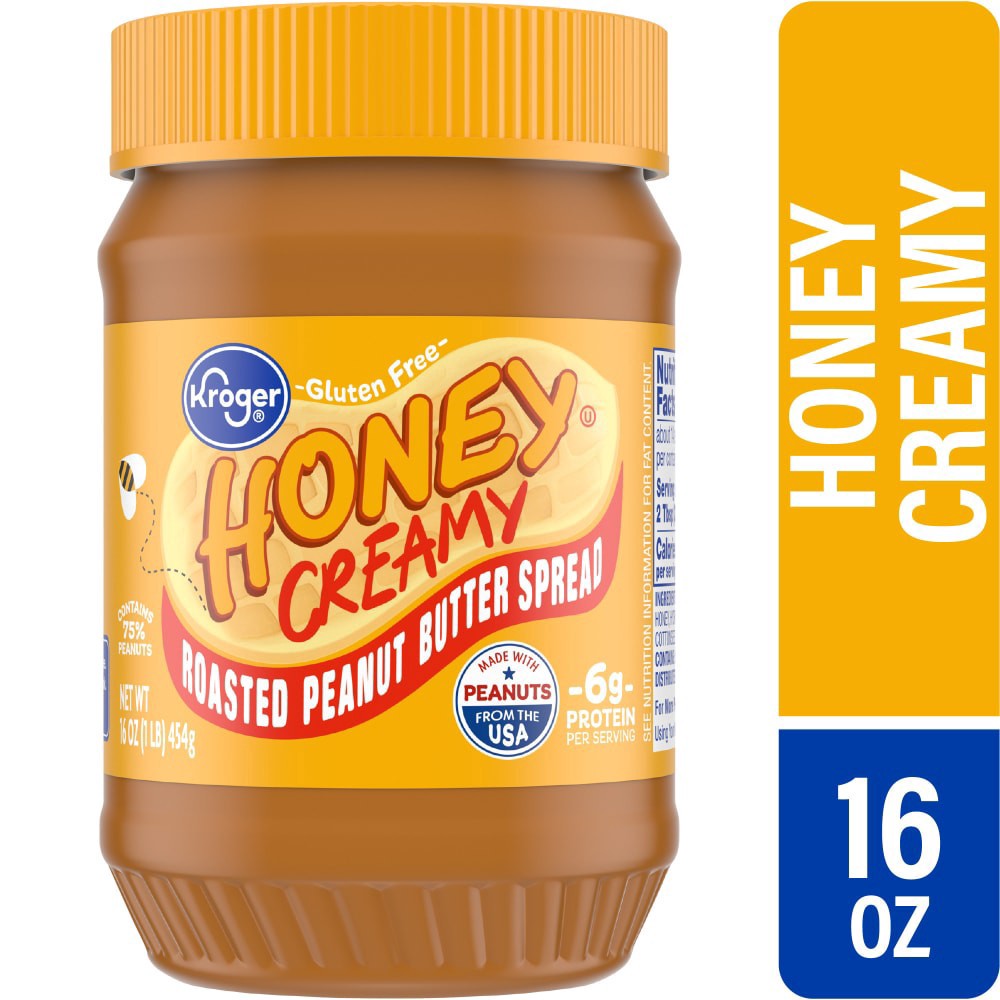 Kroger® Honey Peanut Butter Spread Creamy is your new go-to for all things tasty! Made with peanut butter, sugar, and honey, it's an easy way to add a sweet twist to your meals as well as get 7g of pr…