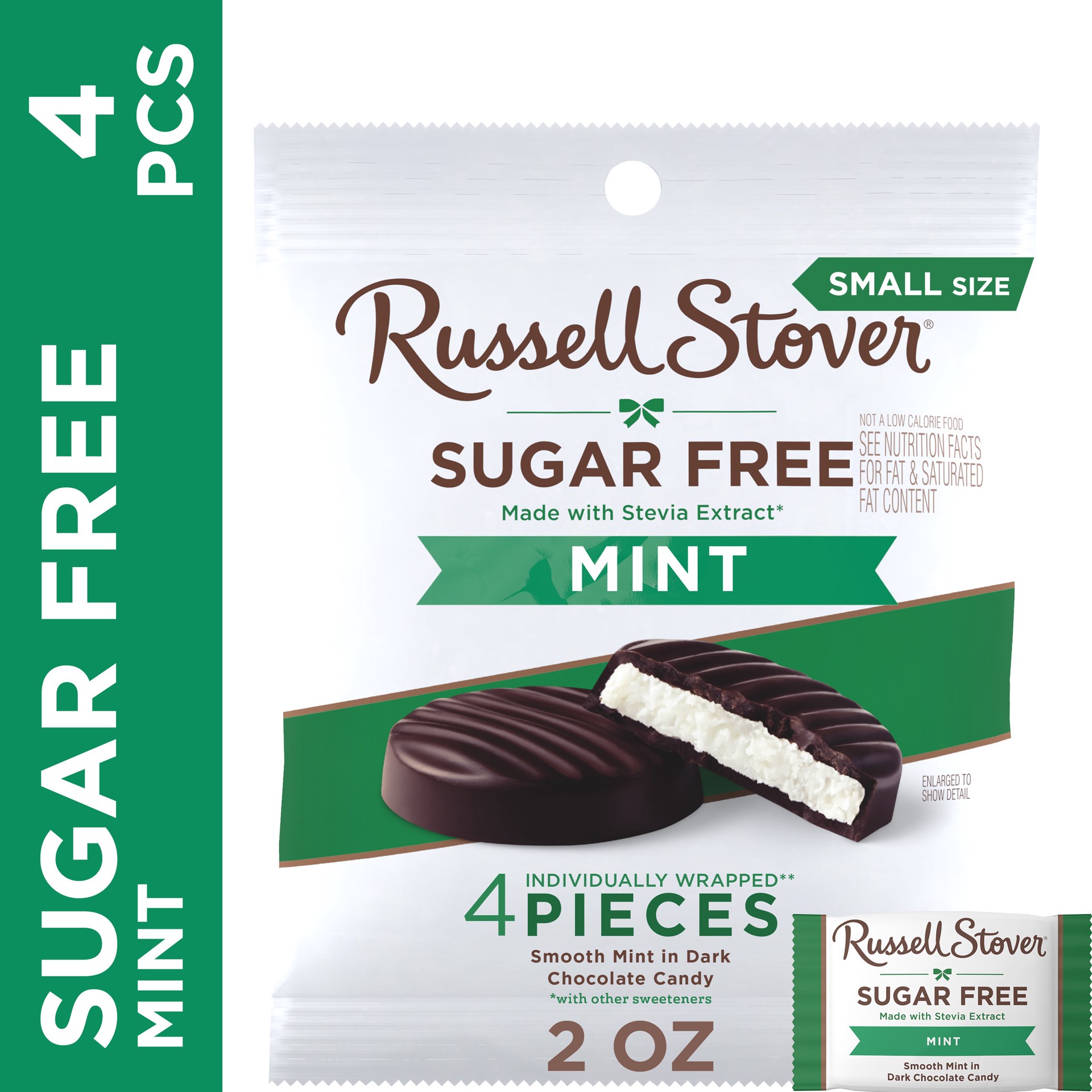 - RUSSELL STOVER Sugar Free Dark Chocolate Mint Patties Candy is made with Stevia extract, a plant-based sweetener that delivers all the sweet taste you crave with no added sugar - zero sugar, great taste!
