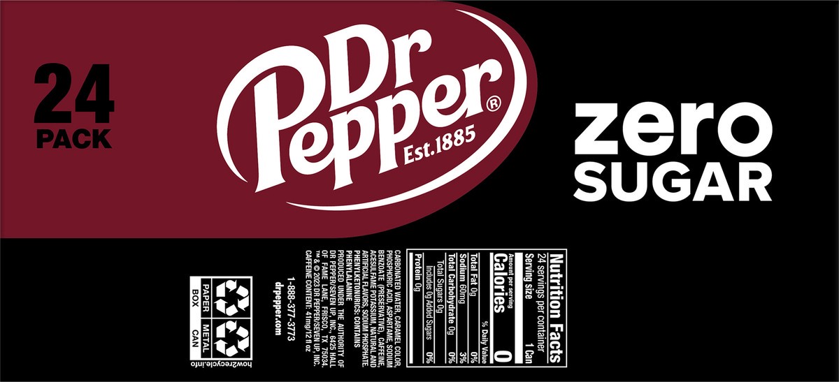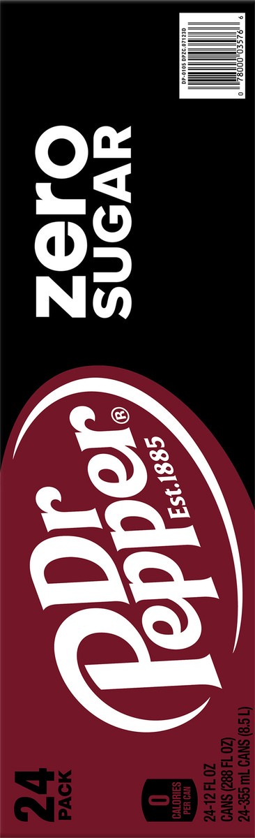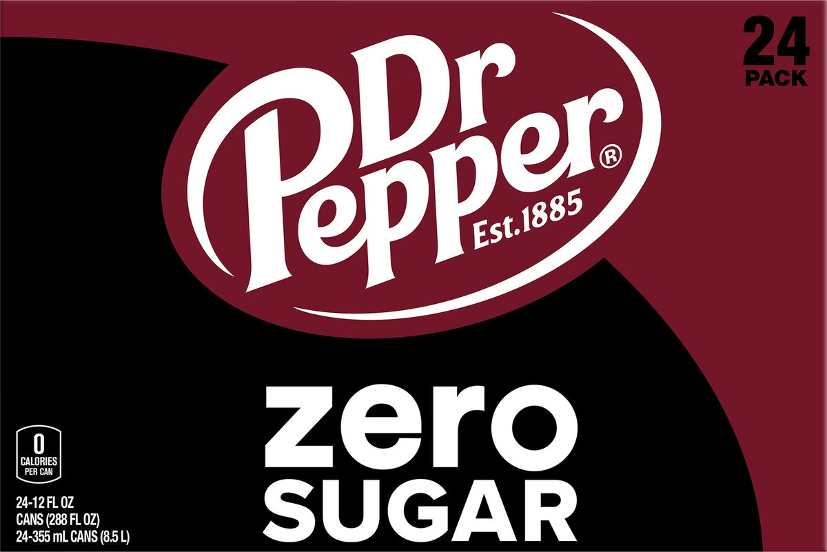Dr Pepper Zero Sugar Soda, 12 fl oz cans, 24 pack