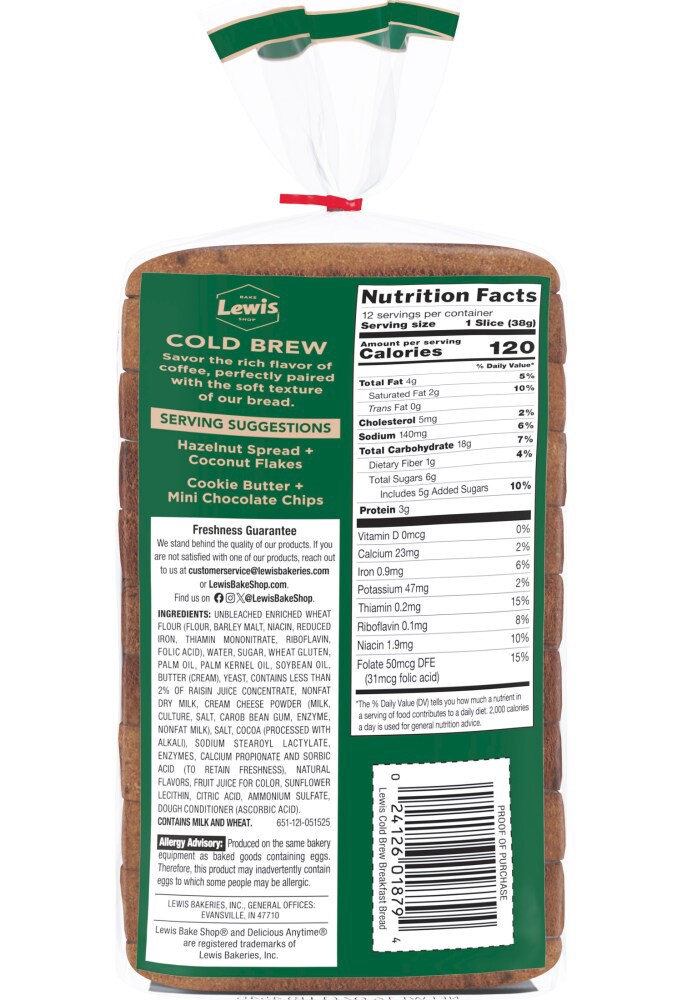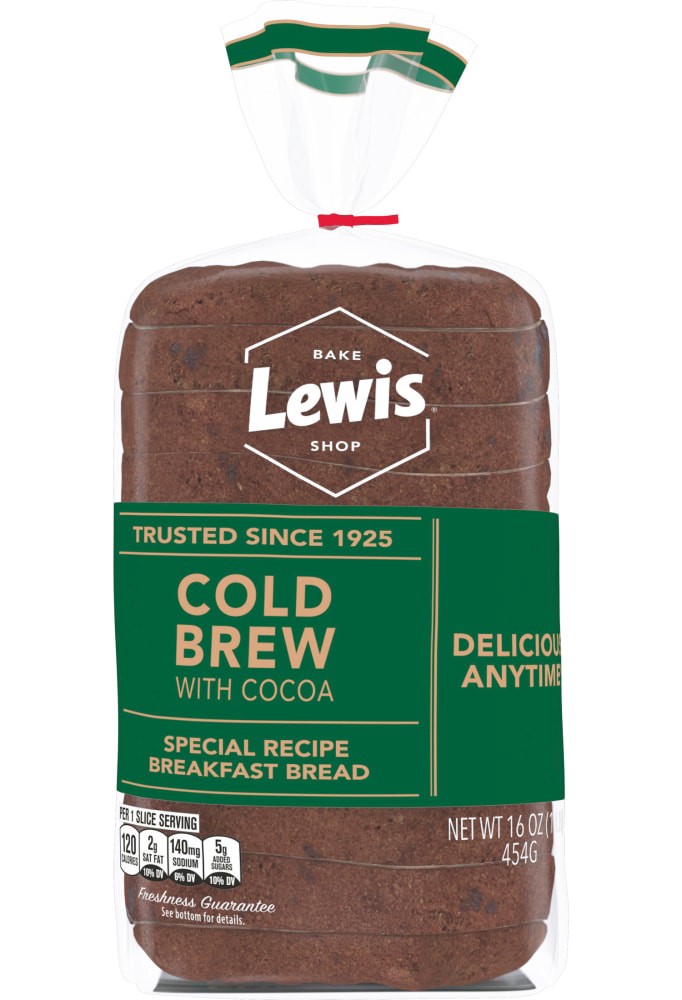 The rich taste of Lewis Bake Shop Cold Brew Coffee Bread makes your breakfast a meal that can't be missed.One 16 oz loaf of Lewis Bake Shop Cold Brew Coffee BreadCold Brew Flavor with CocoaSliced and …