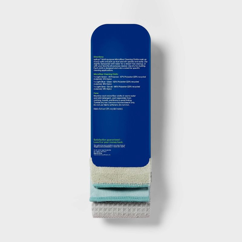 Keep your counters and tables nice and clean with the 3-Pack of Multi-Surface Microfiber Cleaning Cloths from up&up™. This pack of three microfiber cleaning cloths includes cloths in light green, ligh…