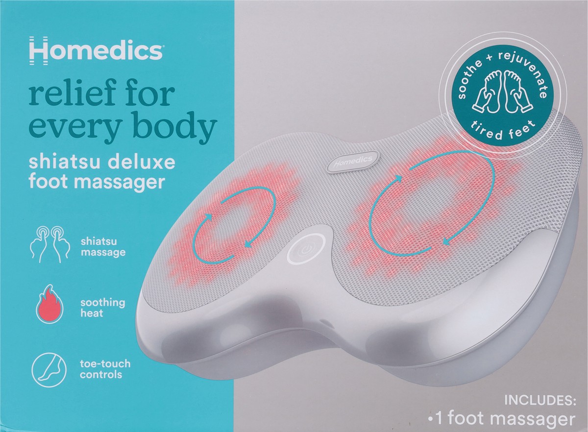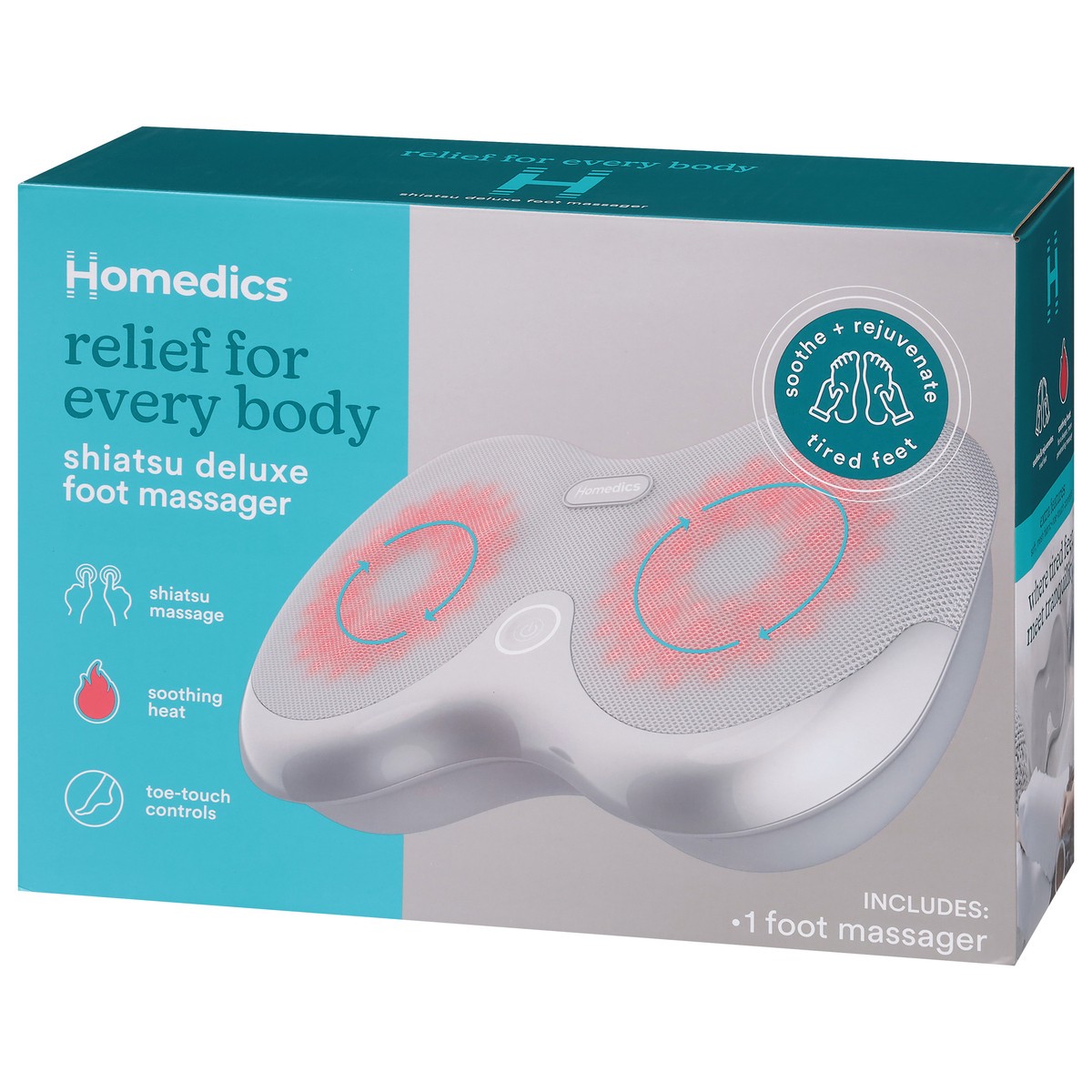 Whether it from standing all day or walking in heels by the end of day our feet need relief! The Shiatsu Foot Massager with Heat featuresdeep-kneading shiatsu massage to help relax sore muscles and re…