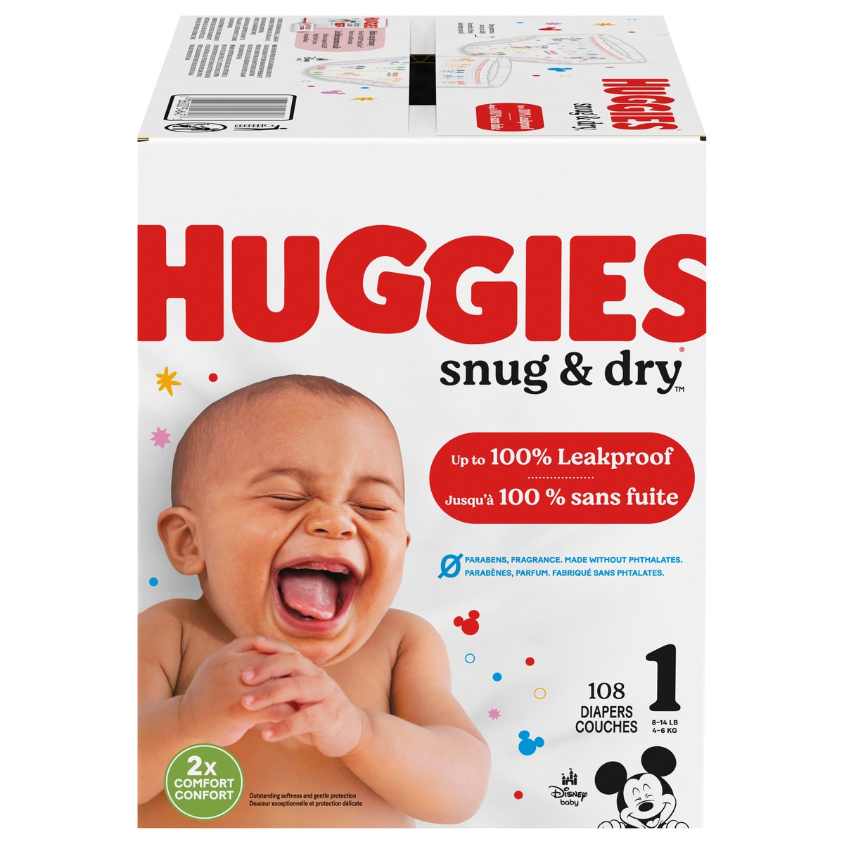 Huggies Snug & Dry Baby Diapers, Size 1 (8-14 lbs), 108 Ct