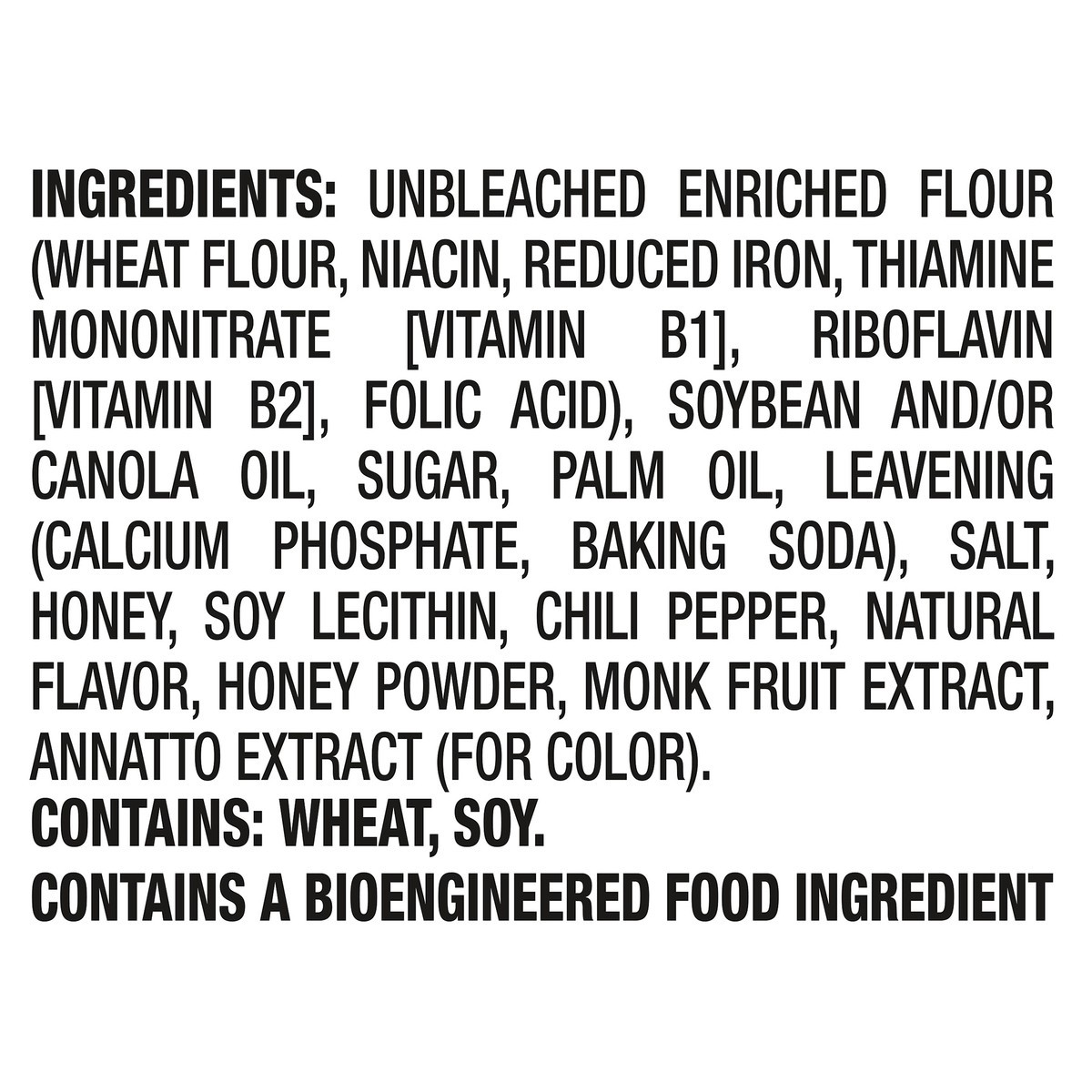 INGREDIENTS: UNBLEACHED ENRICHED FLOUR (WHEAT FLOUR, NIACIN, REDUCED IRON, THIAMINE MONONITRATE [VITAMIN B1], RIBOFLAVIN [VITAMIN B2], FOLIC ACID), SOYBEAN AND/OR CANOLA OIL, SUGAR, PALM OIL, LEAVENIN…