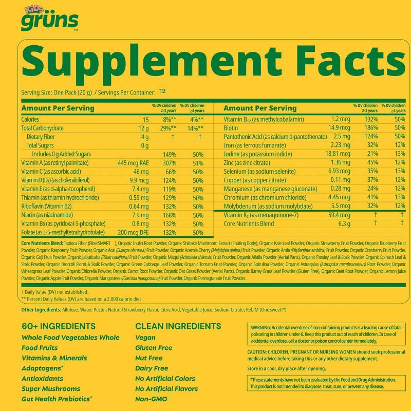 Gruns Grüns Kids' Low Sugar Superfoods Greens Gummies - 72ct/12 Servings