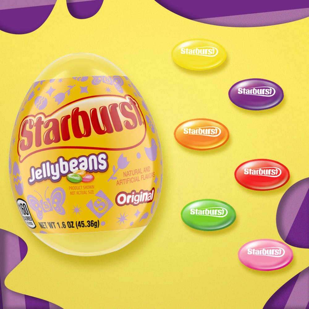 STARBURST Original Jellybeans Easter Candy Egg makes egg-cellent Easter gifts. These Easter basket stuffers are filled with the classic STARBURST assorted fruit flavors of strawberry, cherry, orange, …