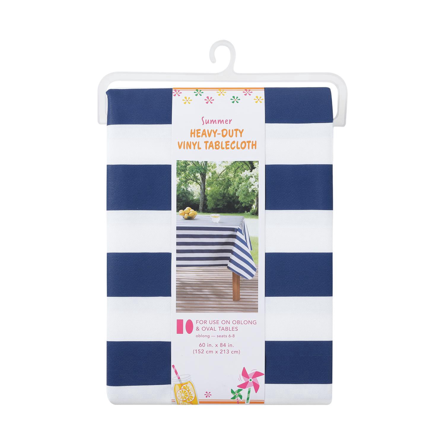 Meijer Corporate Seasonal Summer Peva Tablecloth, Cabana Stripe, 60 In X 84 In