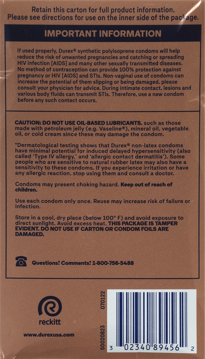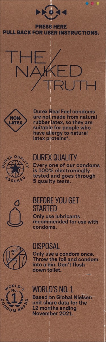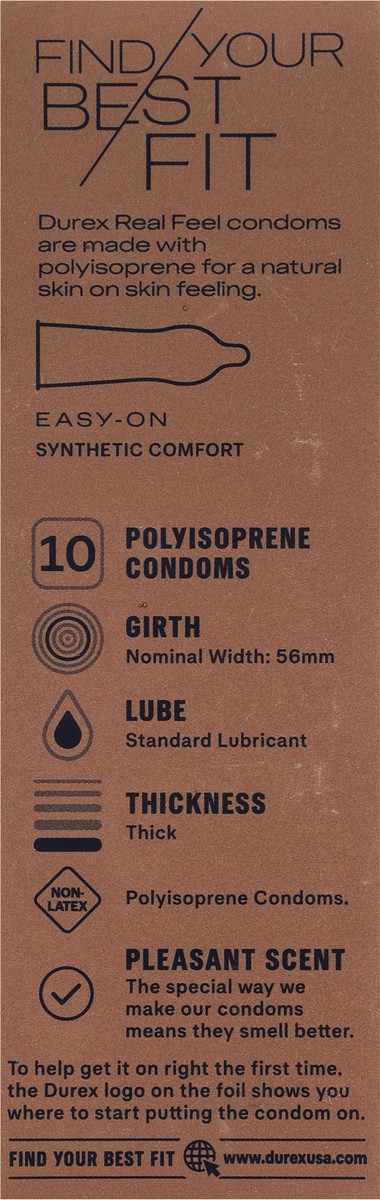 Durex Non-Latex Polyisoprene Condoms Regular Fit Real Feel - 10 ct