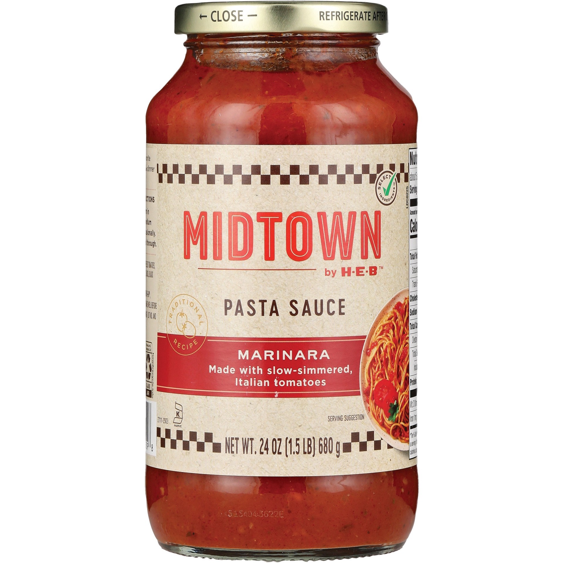 Elevate your next pasta night with a little help from Midtown by H-E-B marinara pasta sauce. Offering the rich flavors of slow-simmered Italian tomatoes and savory herbs, it's a decadent topper for al…