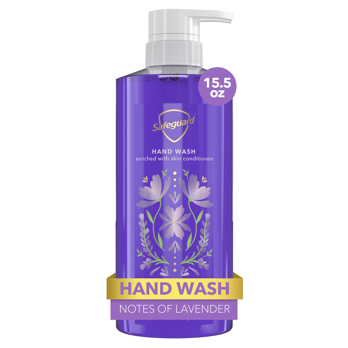 Safeguard's Notes of Lavender Scent Hand Soap smells like a freshly cut bouquet of lavender from a French field on a dewy morning (Fragrance Notes: Lavender, Mint Leaves, Waterlily, and Amber). Safegu…
