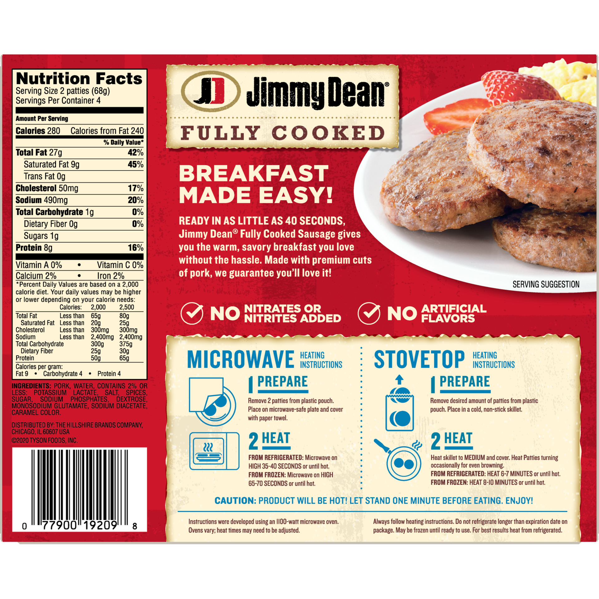 Celebrate the day and the delicious taste of Jimmy Dean Fully Cooked Original Pork Breakfast Sausage Patties. Made with premium pork, seasoned to perfection with our signature blend of spices, these s…