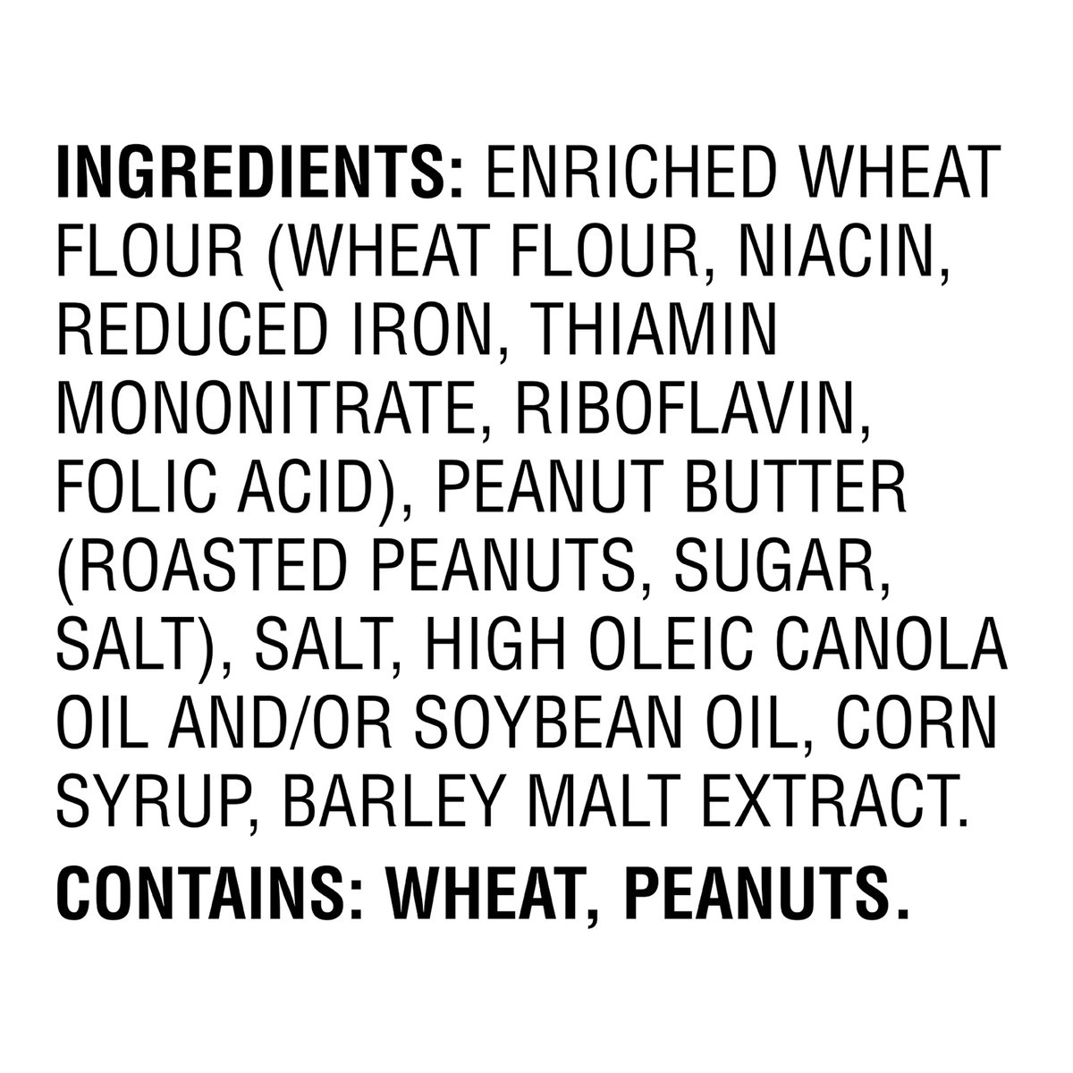 Enriched Wheat Flour (Wheat Flour, Niacin, Reduced Iron, Thiamin Mononitrate, Riboflavin, Folic Acid), Peanut Butter (Roasted Peanuts, Sugar, Salt), Salt, High Oleic Canola Oil and/or Soybean Oil, Cor…