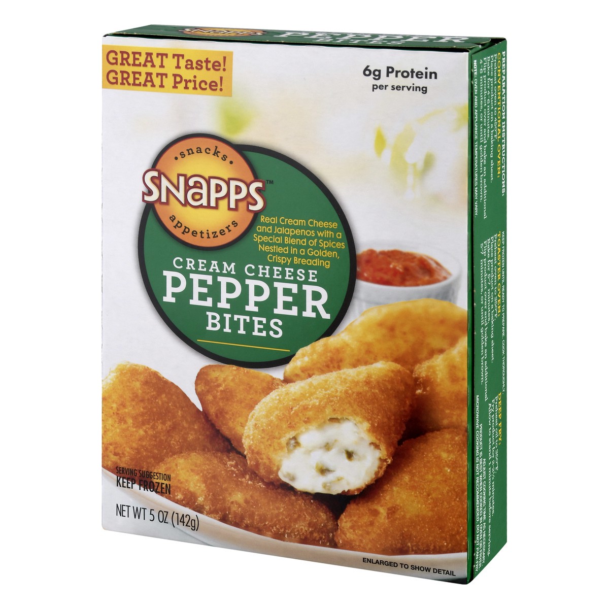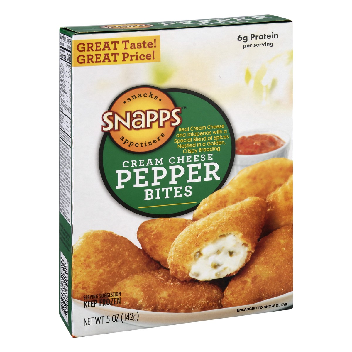 Real cream cheese and jalapenos with a special blend of spices nestled in a golden, crispy breading. 6 g protein per serving. Great taste! Great price. Snacks appetizers. Questions or Comments: 1-855-…