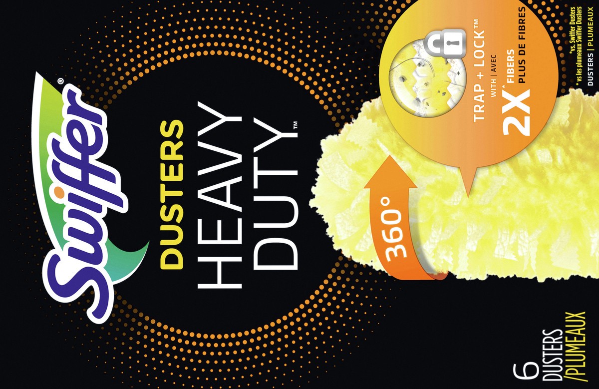 2x (vs. Swiffer Dusters) Fibers. Soft & fluffy fibers grab dust & don't let go. Full 360 degrees coverage for a whole clean. Trap+ lock dust in every room. 360 specially coated fibers, Trap + lock. Du…