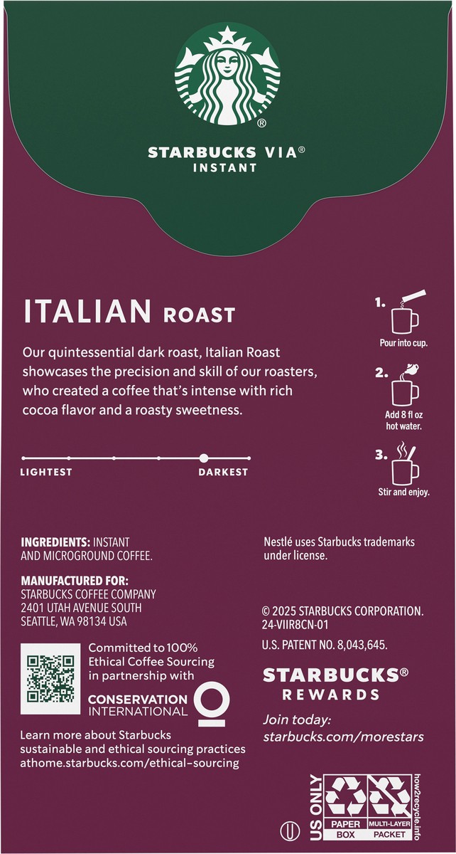 Starbucks Via Instant Coffee Dark Roast Italian Roast Packets - 8-0.11 Oz