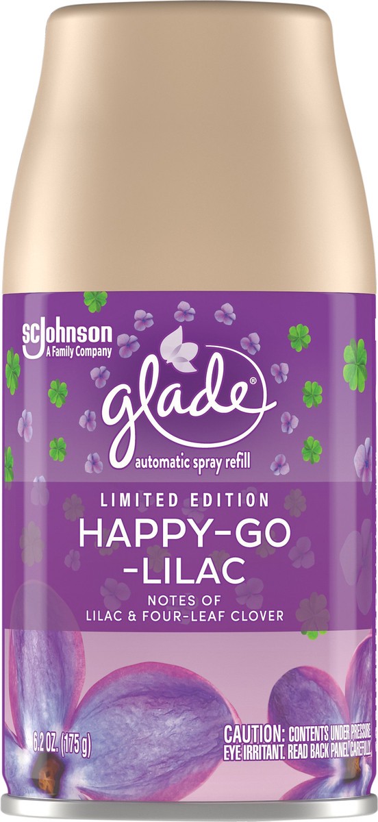 - Refresh your mood and chill out with this Glade spray automatic air freshener and the Happy-Go-Lilac fragrance
