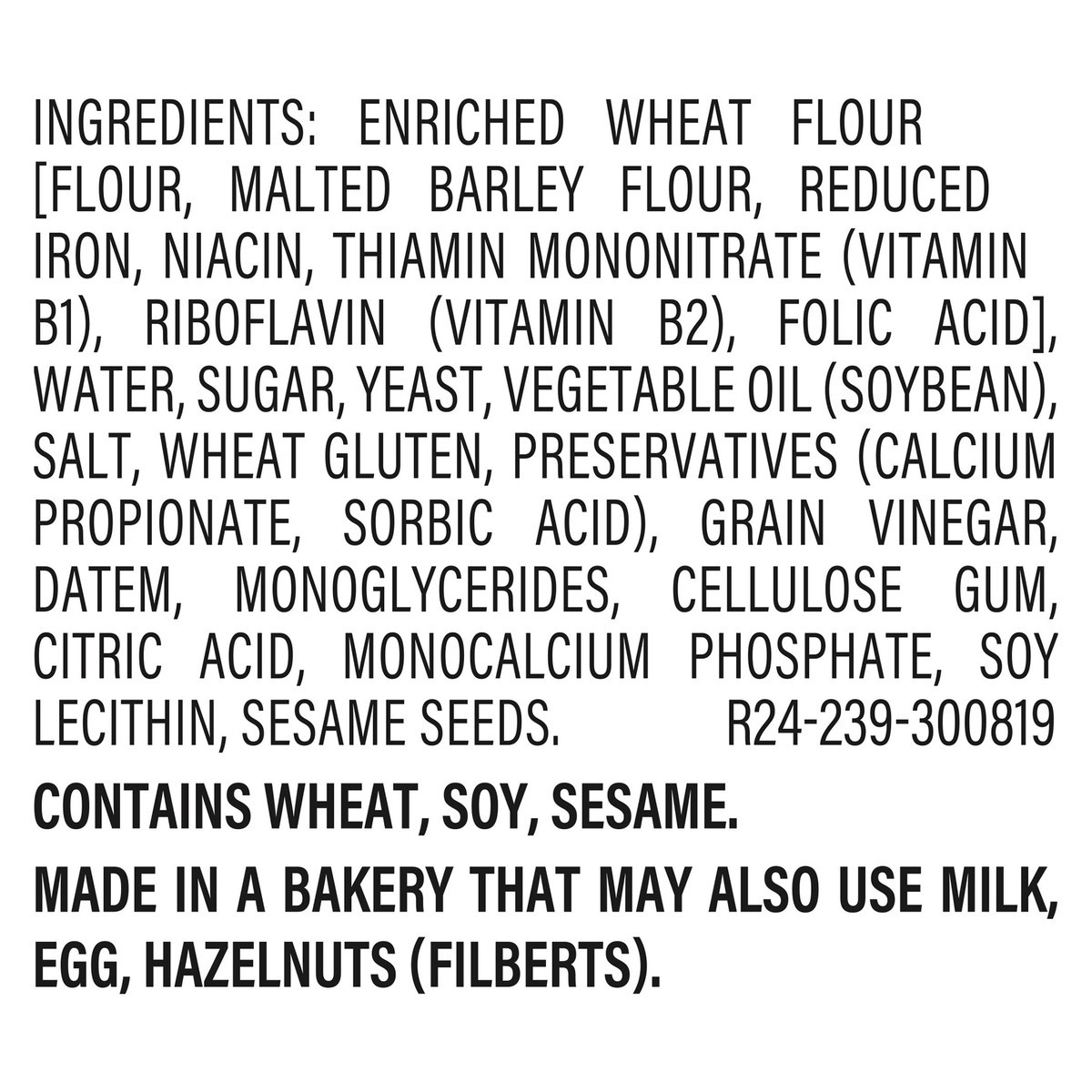 Enriched Wheat Flour [Flour, Malted Barley Flour, Reduced Iron, Niacin, Thiamin Mononitrate (Vitamin B1), Riboflavin (Vitamin B2), Folic Acid], Water, Sugar, Yeast, Vegetable Oil (Soybean), Salt, Whea…