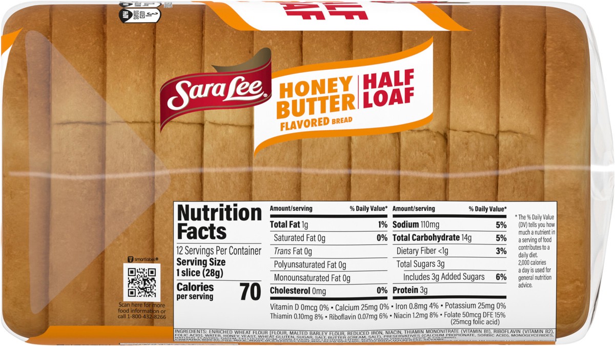 Sara Lee Honey Butter Half Loaf Bread 1 Count - 12 Oz