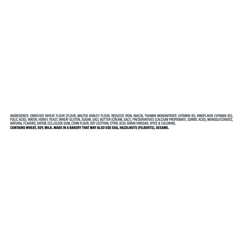 Enriched Wheat Flour [Flour, Malted Barley Flour, Reduced Iron, Niacin, Thiamin Mononitrate (Vitamin B1), Riboflavin (Vitamin B2), Folic Acid], Water, Honey, Yeast, Wheat Gluten, Sugar, Salt, Butter (…