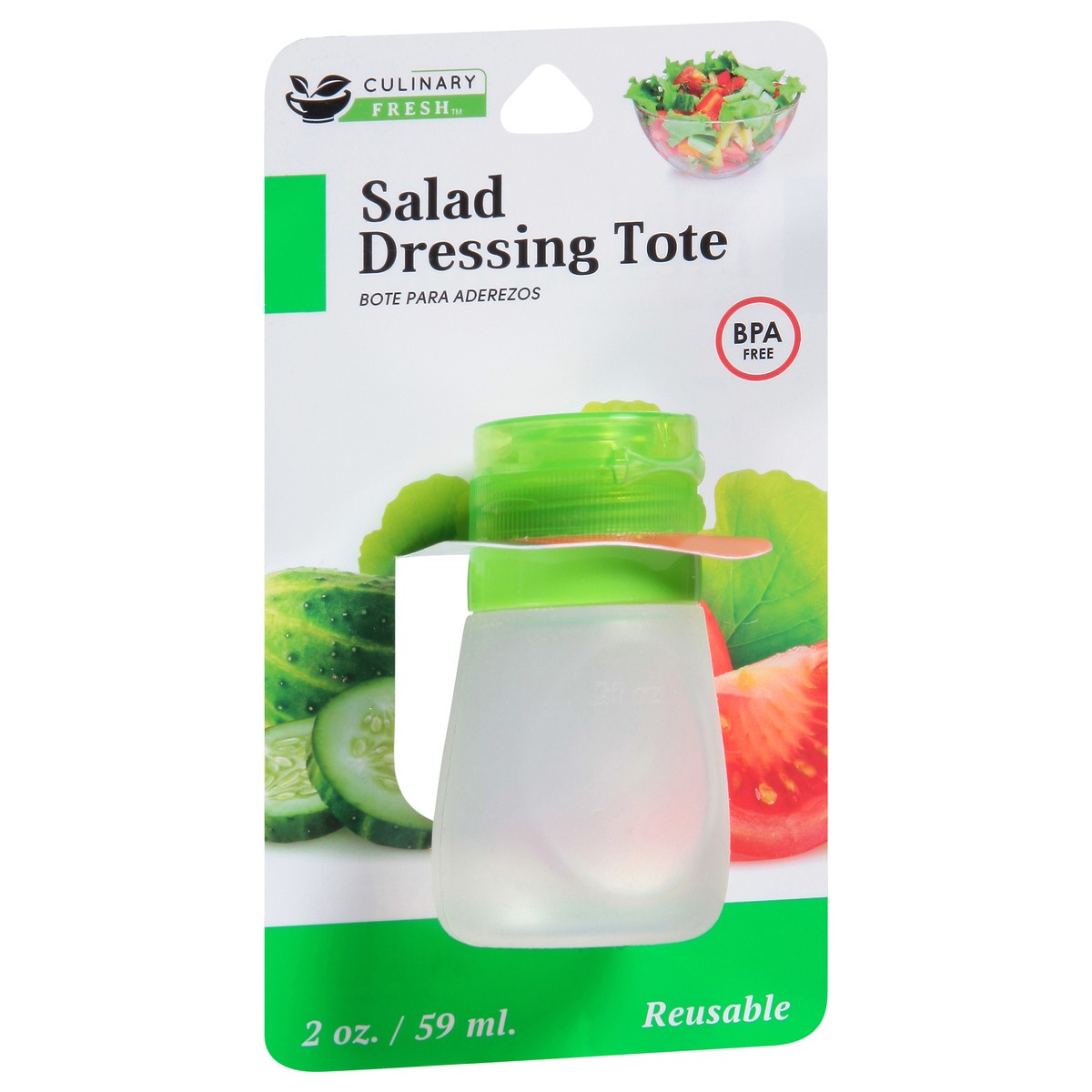 Salad Dressing Tote: Easy to fill with your favorite dressing. Top shelf dishwasher safe. Safe for microwave and freezer. Reusable. Dispose of properly.