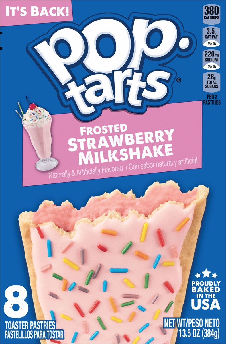 Pop-Tarts Frosted Strawberry Milkshake toaster pastries are a delicious treat to look forward to any time of day. Jump-start your day with a sweet and decadent blast of gooey, strawberry-flavored fill…