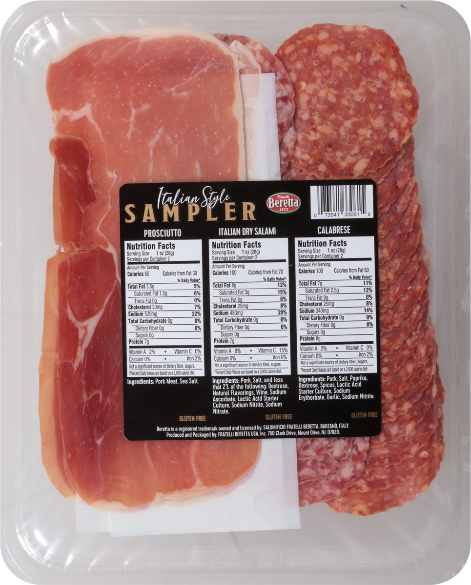 Fratelli Beretta Calabrese Dry Salami & Prosciutto Italian Style Sampler, An Italian charcuterie board in a pack. This sampler features spicy Calabrese dry salami and delicate, savory prosciutto. Pair…