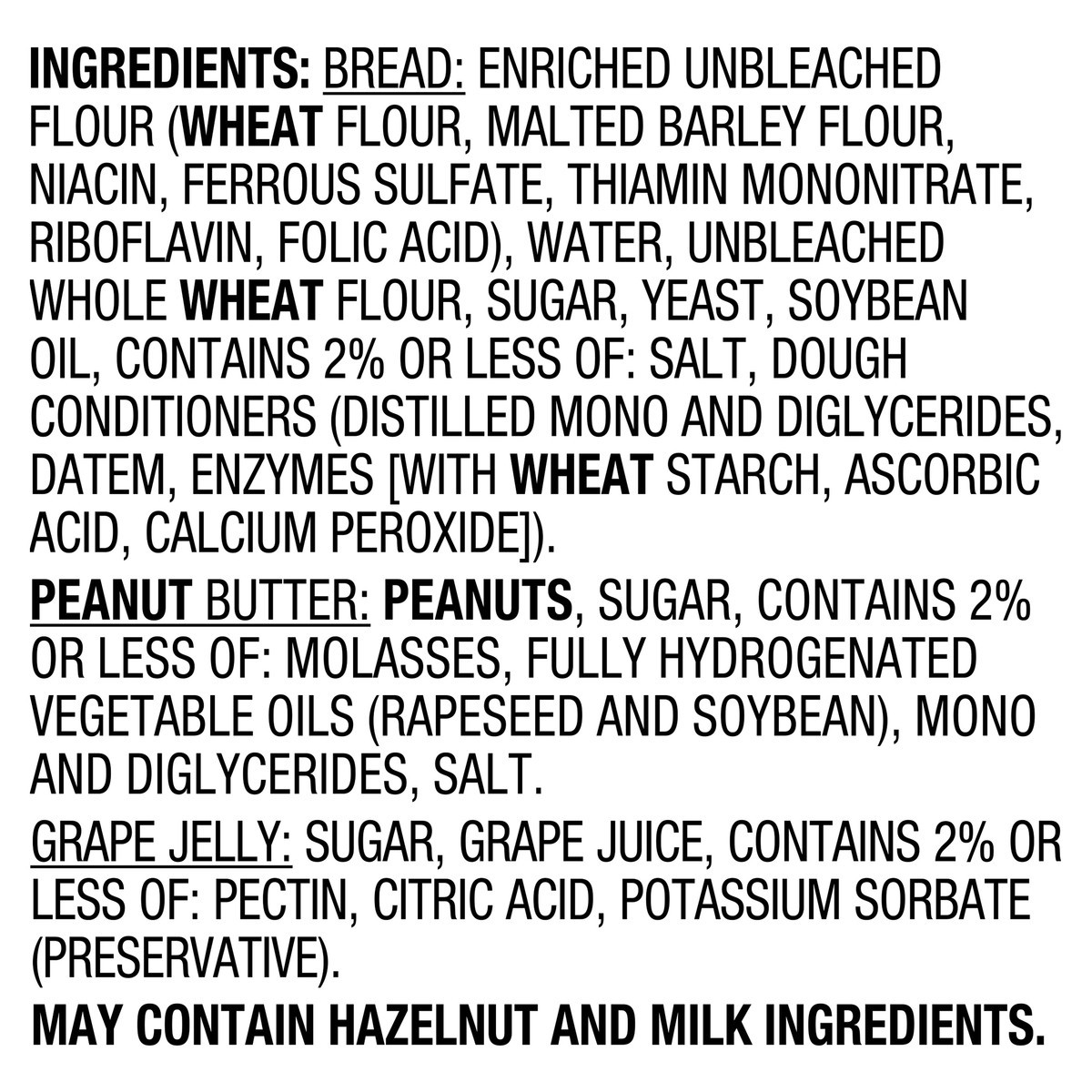 Bread: Enriched Unbleached Flour (Wheat Flour, Malted Barley Flour, Niacin, Ferrous Sulfate, Thiamin Mononitrate, Riboflavin, Folic Acid), Water, Unbleached Whole Wheat Flour, Sugar, Yeast, Soybean Oi…