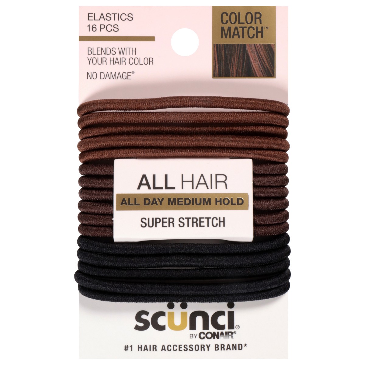 scünci No Damage Color Match Comfy Hold Elastics - 16 ea