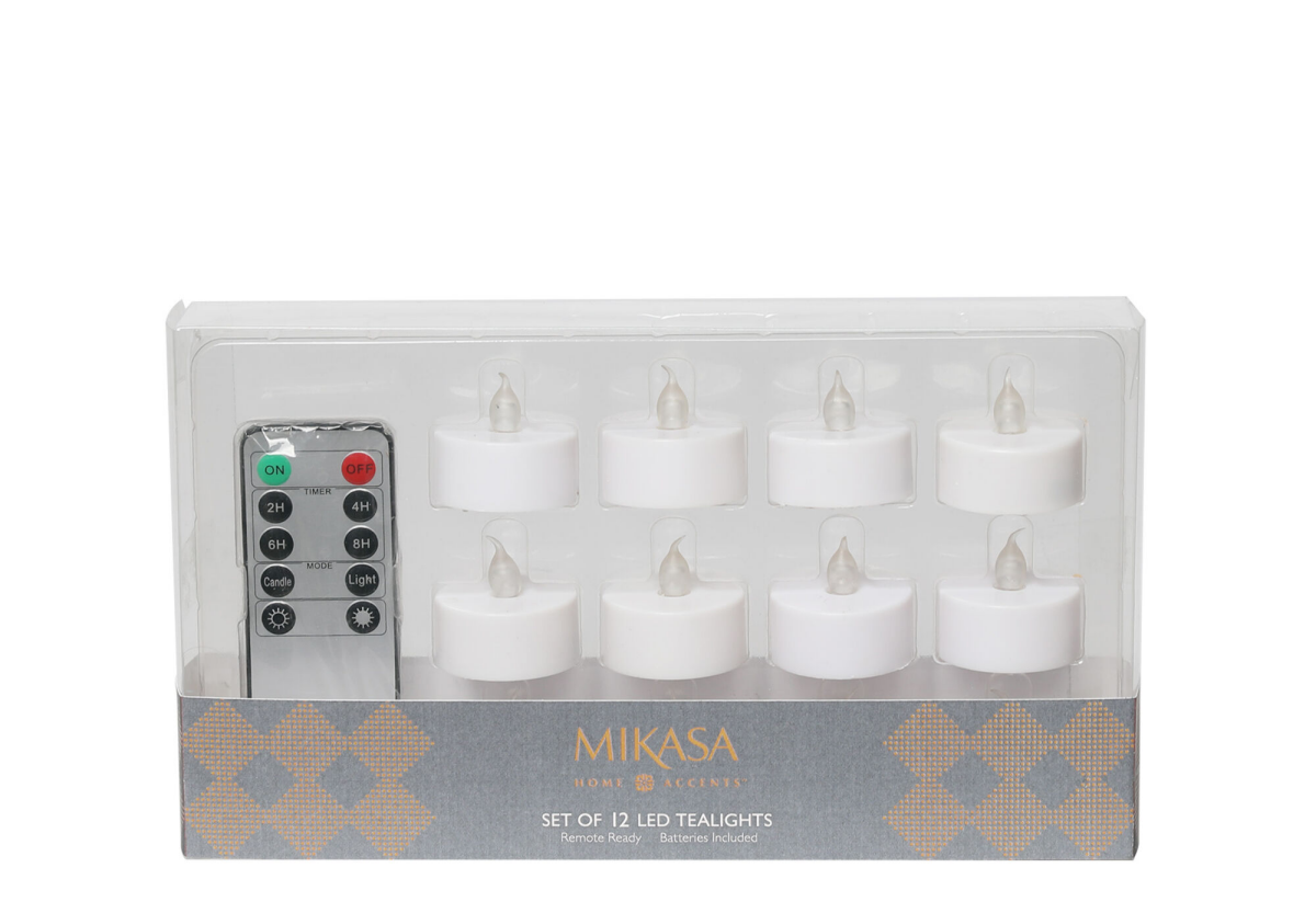 Safely create a candlelit ambience without using a flame with this Set of 12 White LED Tealights from Mikasa Home. The LED lights are designed to emit a flickering effect, just like a real candle, and…
