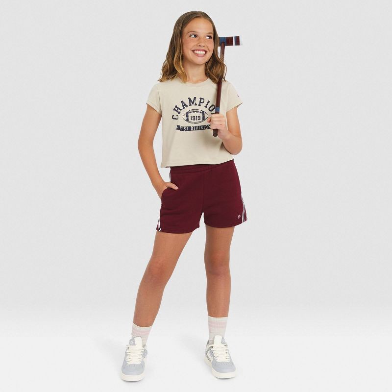 Amp up your child's activewear with a pair of sporty shorts like the Champion® Girls' Fleece Active Shorts with Varsity Stripes. Crafted in Champion's® signature cotton fleece with contrasting side st…
