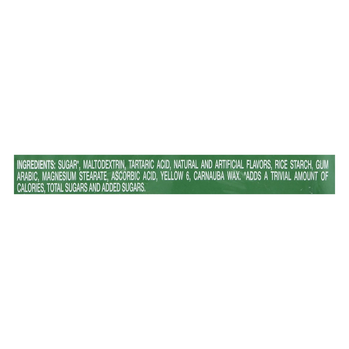 Sugar (Add a Trivial Amount of Calories, Total Sugars and Added Sugars), Maltodextrin, Tartaric Acid, Natural and Artificial Flavors, Rice Starch, Gum Arabic, Magnesium Stearate, Ascorbic Acid, Yellow…