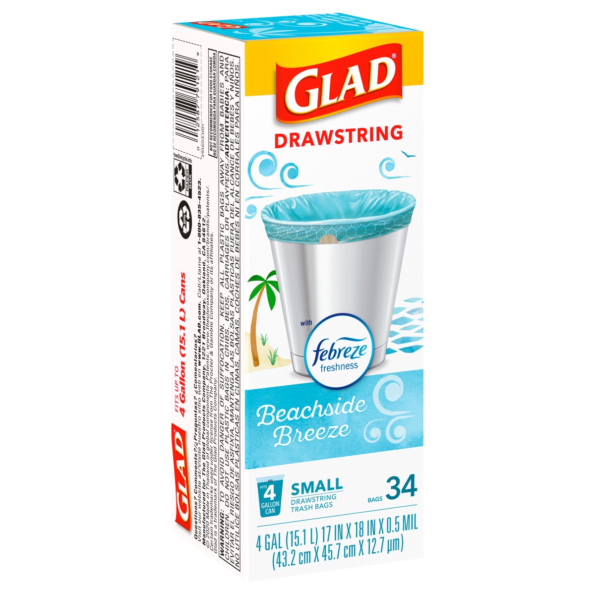 Glad Febreze Beachside Breeze Odorshield Small Drawstring Trash Bags 4 Gallon - 34 Count