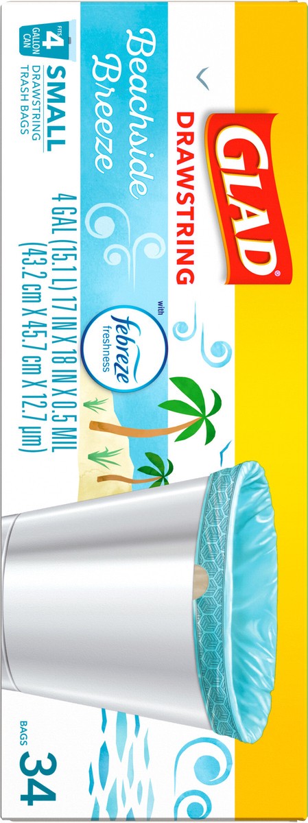 Glad Febreze Beachside Breeze Odorshield Small Drawstring Trash Bags 4 Gallon - 34 Count