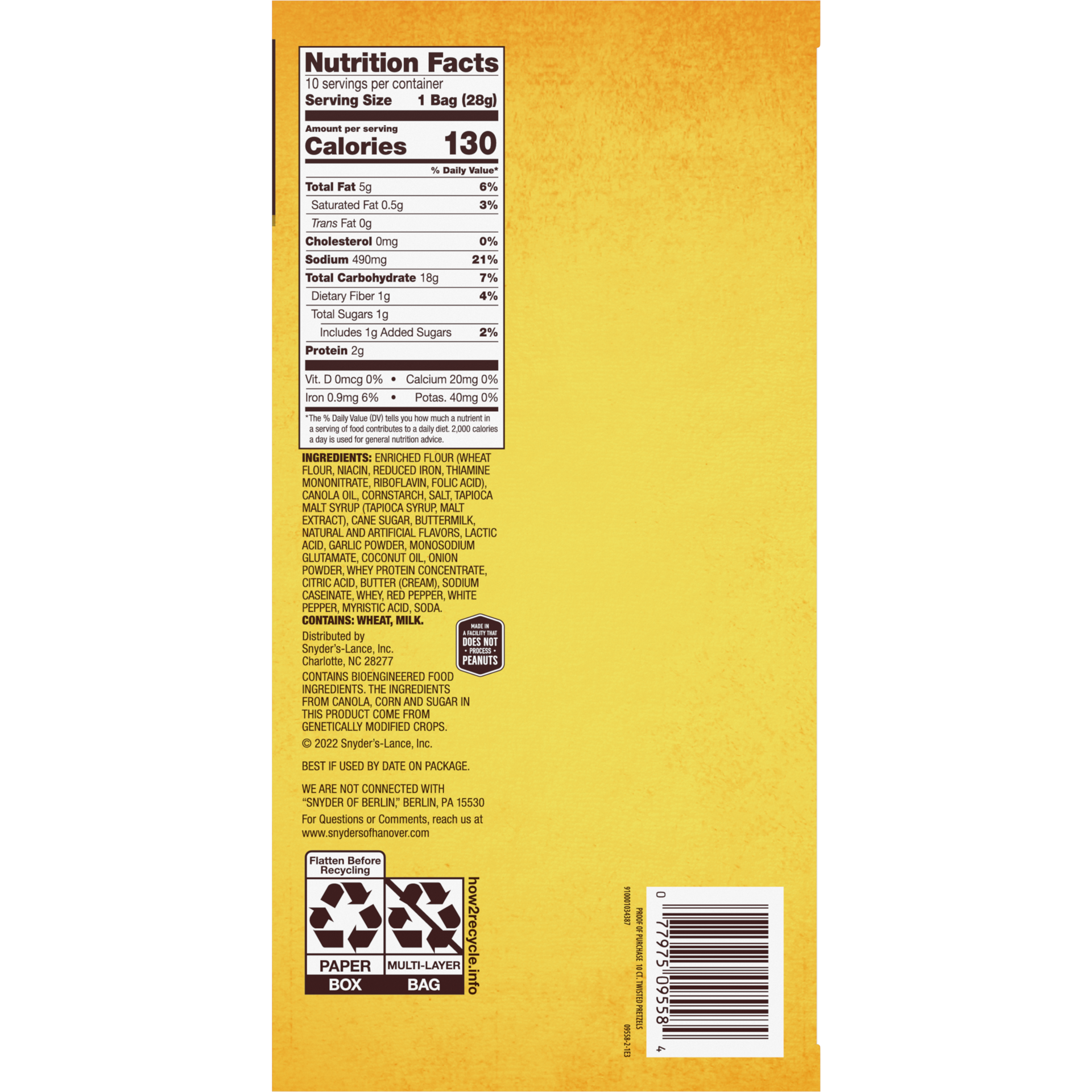 Snyder''s of Hanover Twisted Seasoned Pretzel Sticks are generously seasoned with a delicious buttery blend of onion, garlic and pepper. With 10 individual snack packs, their BIG, irresistibly craveab…