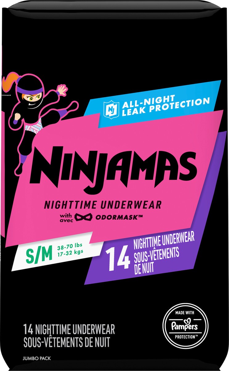 Ninjamas Nighttime Underwear… from Pampers, the #1 pediatrician recommended brand!Take on bedwetting accidents and wake up confident with our All-Night Leak Protection. Our exclusive Pampers LockAway …
