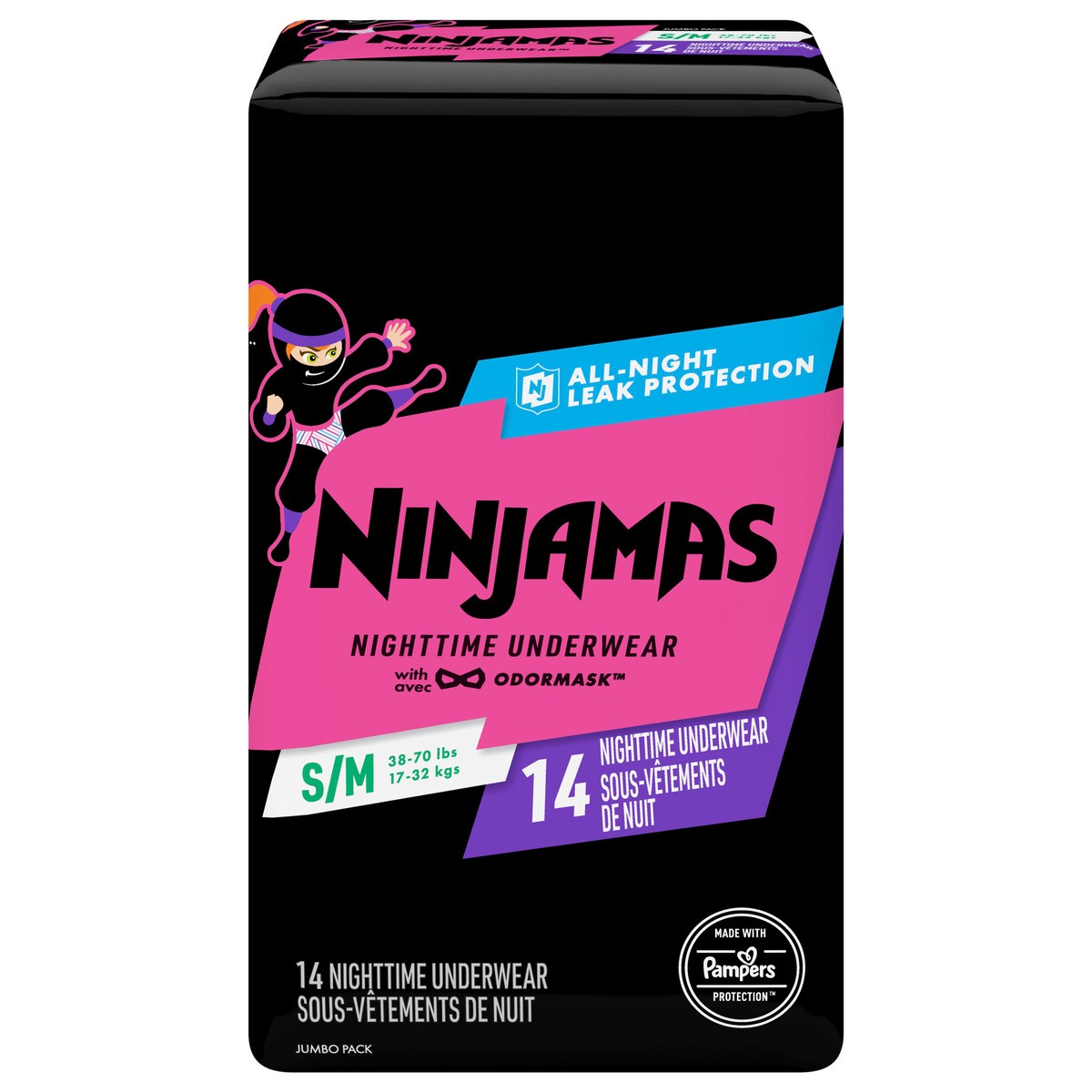 Ninjamas Nighttime Underwear… from Pampers, the #1 pediatrician recommended brand!Take on bedwetting accidents and wake up confident with our All-Night Leak Protection. Our exclusive Pampers LockAway …