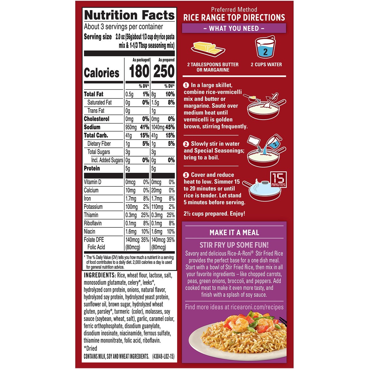Our Rice-A-Roni Stir Fried Rice flavor blends rice, vermicelli, and Asian seasonings to create a tasty side dish your whole family will love. It's great all by itself or serve it as a delicious comple…