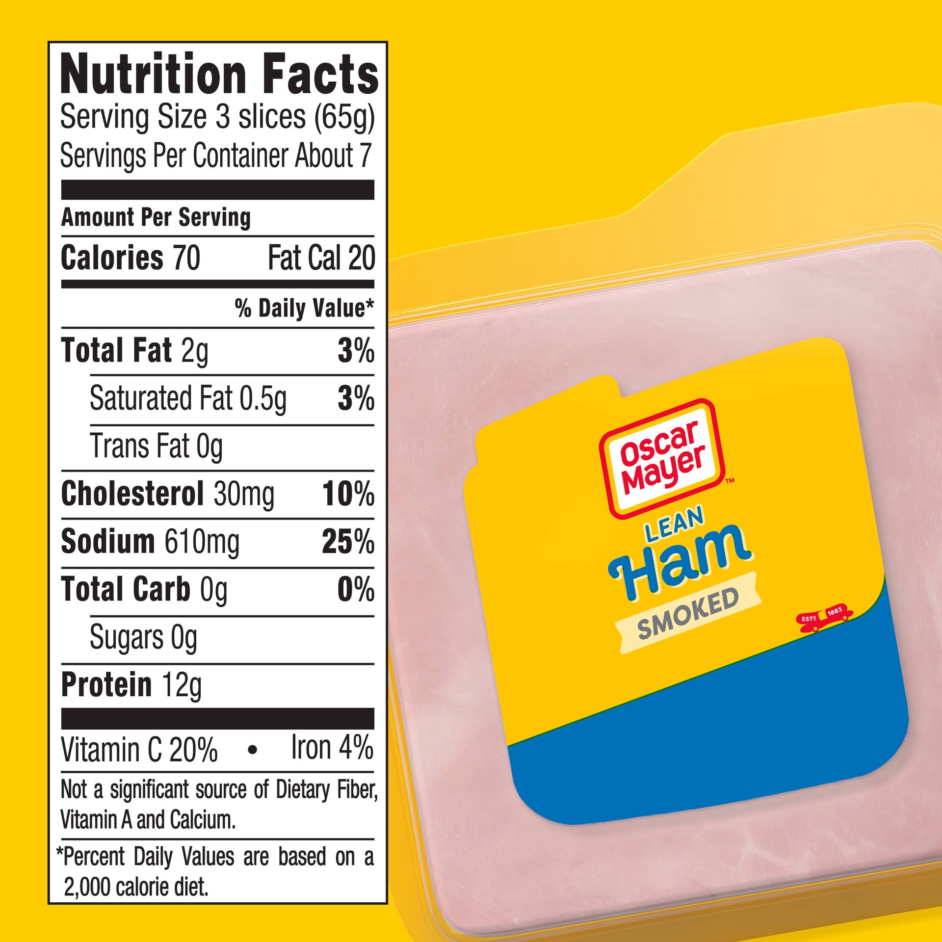 Craft the perfect sandwich with Oscar Mayer Lean Smoked Ham, Water Added, Sliced Lunch Meat. With 70 calories per serving (3 slices), sliced smoked ham makes a delicious and flavorful addition to any …